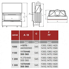 Топочная камера: кирпичная кладка классическая, кирпичная кладка классическая с мотивом, кирпичная кладка модерн, из стали. «Дровяная» горелка, с декором в виде поленьев, выполненных из керамики. Концентрирует пламя в середине. Напоминает небольшой костер. Горелка, декорированная галькой из каррарского мрамора. Распределяет пламя по всей ширине камина, обеспечивая большую теплоотдачу.