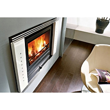 Облицовки EdilKamin выполнены из мрамора, травертина, нержавеющей стали, окрашенного металла, стекла - и это еще далеко не полный перечень используемых материалов для производства дровяных и пеллетных каминов.