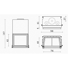 - Внутренние размеры топки, см 60x50x40h